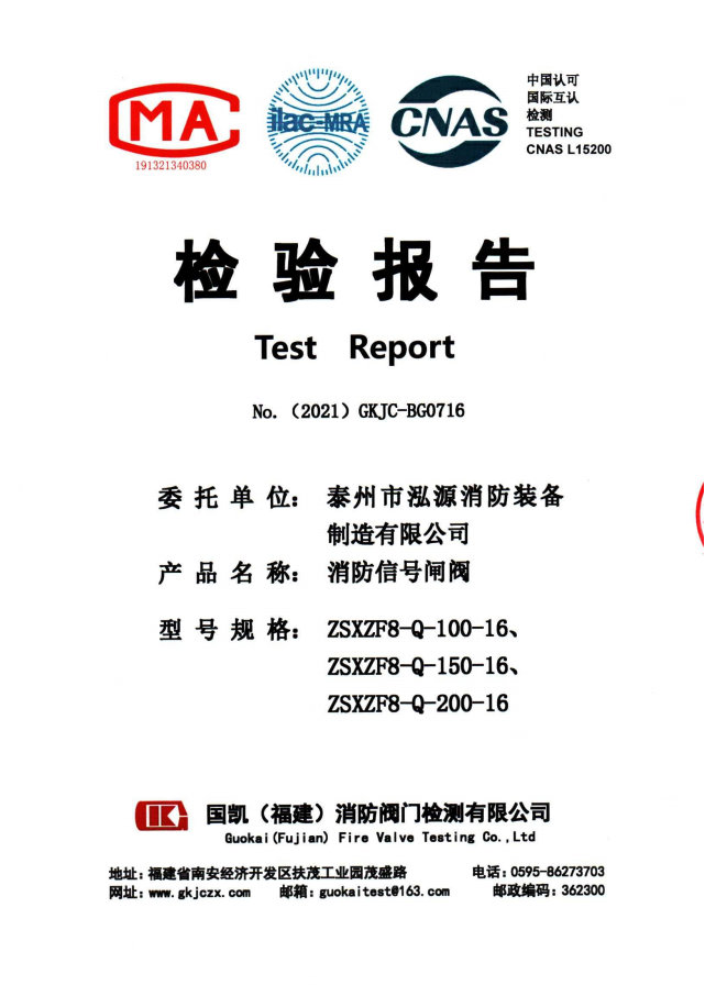 啟真溝槽消防信號閘閥ZSXZF8-Q檢驗報告